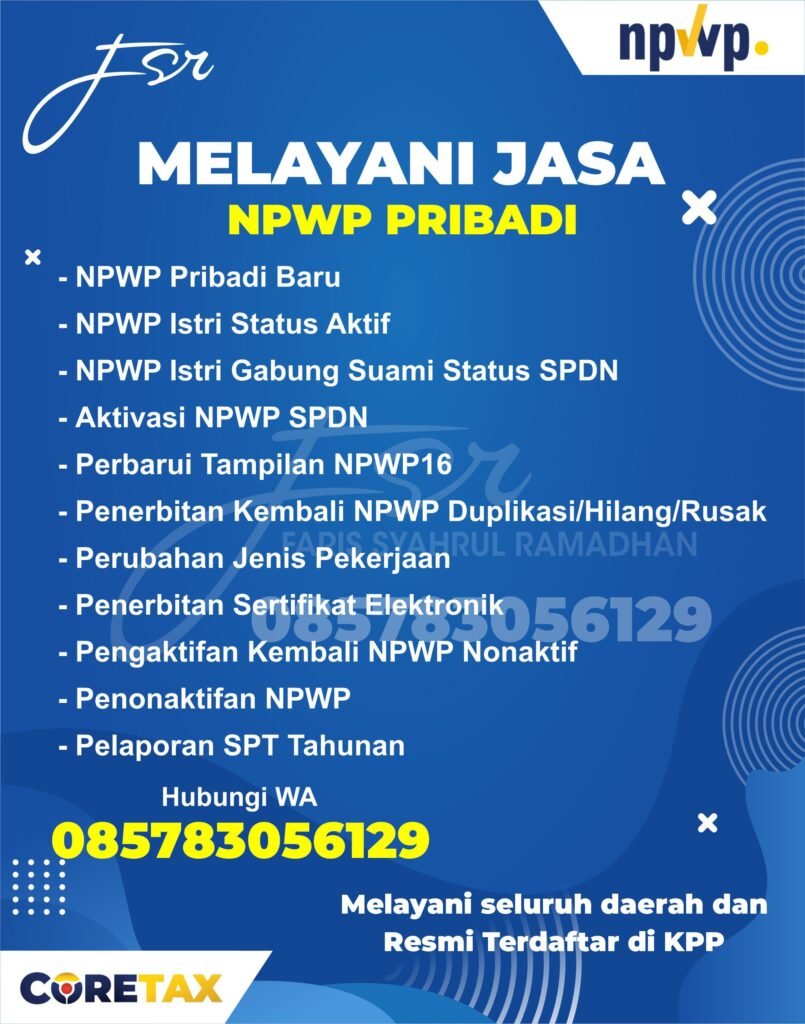 NPWP (Nomor Pokok Wajib Pajak) wajib dimiliki oleh setiap Wajib Pajak sebagai identitas resmi dalam menjalankan hak dan kewajiban perpajakannya. FSR Benjasa hadir untuk mempermudah proses pembuatan NPWP secara legal dan cepat, tanpa harus antre atau ribet.